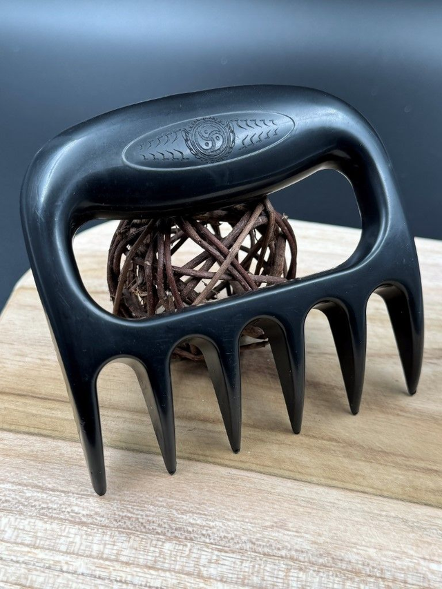 Berenklauw van zwart kunststof met BDSM-symbool.