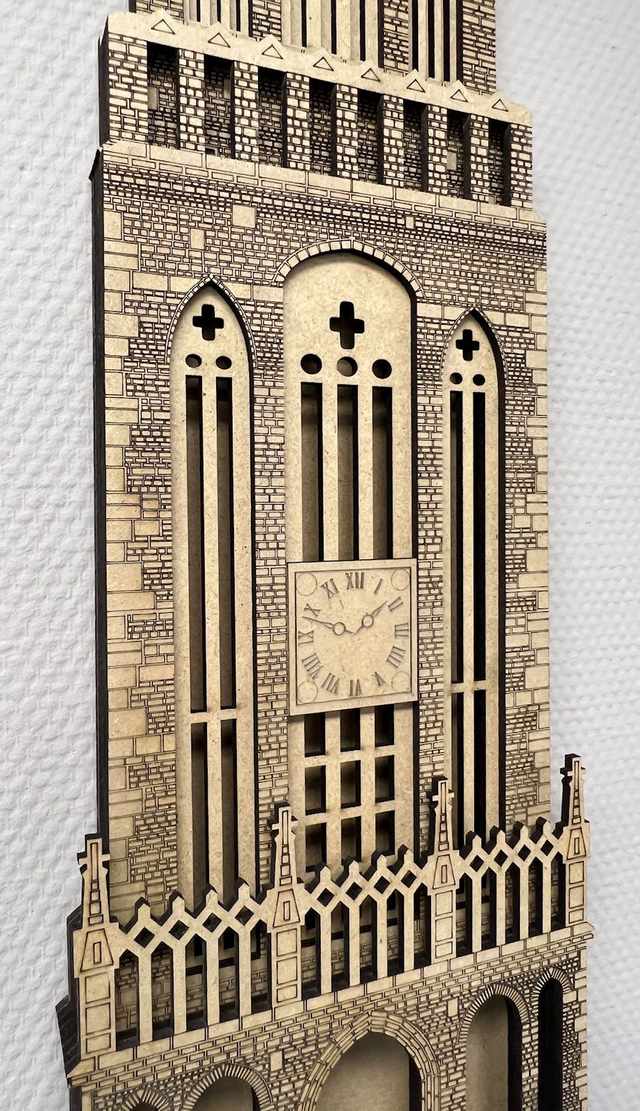 Domtoren van Utrecht 100cm hoog, 20cm breed en 3,4 cm dik.