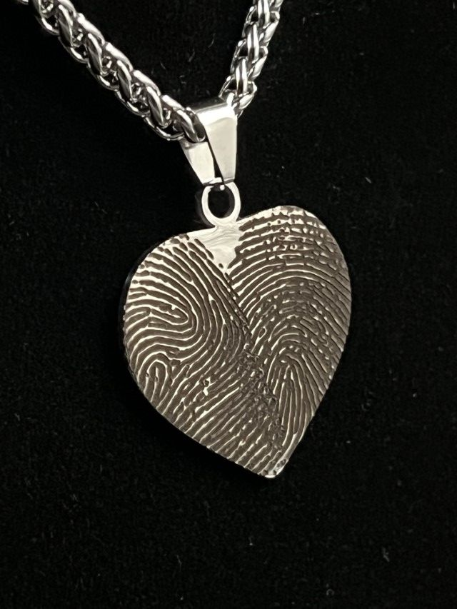 Neem contact met ons op en maak een afspraak. Totale kosten van een compleet collier met hanger, maken van een vingerafdruk, digitaliseren en het laser graveren en na-bewerken van het sieraad voor € 75,00. Meerprijs extra vingerafdruk € 20,00.