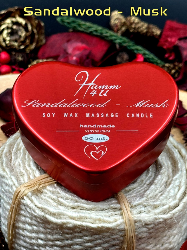 Massagekaars / Geurkaars Rood Hart Sandalwood - Musk 50ml. (ruim 80gram)