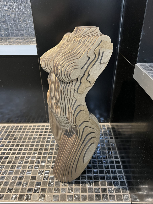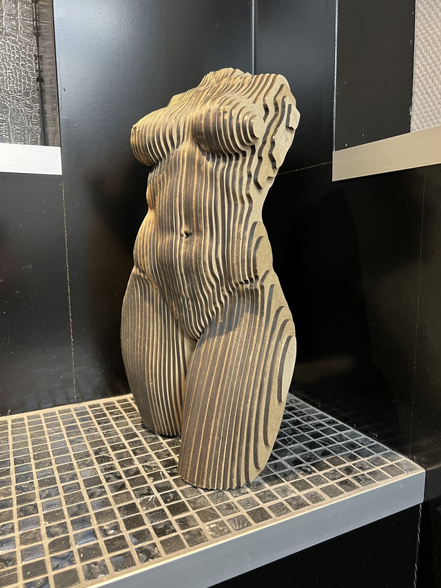 Torso Female Bedekt - Een torso van een dames bovenlijf gemaakt van 4mm MDF, is leverbaar als bouwpakket met een Nederlandse handleiding, (houtlijm niet inbegrepen) Deze torso is ook gemonteerd leverbaar en zelfs gemonteerd in de kleur zwart of goud gespoten. Dit kunstwerk weegt 3,25 kilo en heeft een maatvoering van 36,5x20x15 cm. Op verzoek ook in andere kleuren leverbaar. Voor meer informatie, neem contact met ons op via de website van Humm4U.com