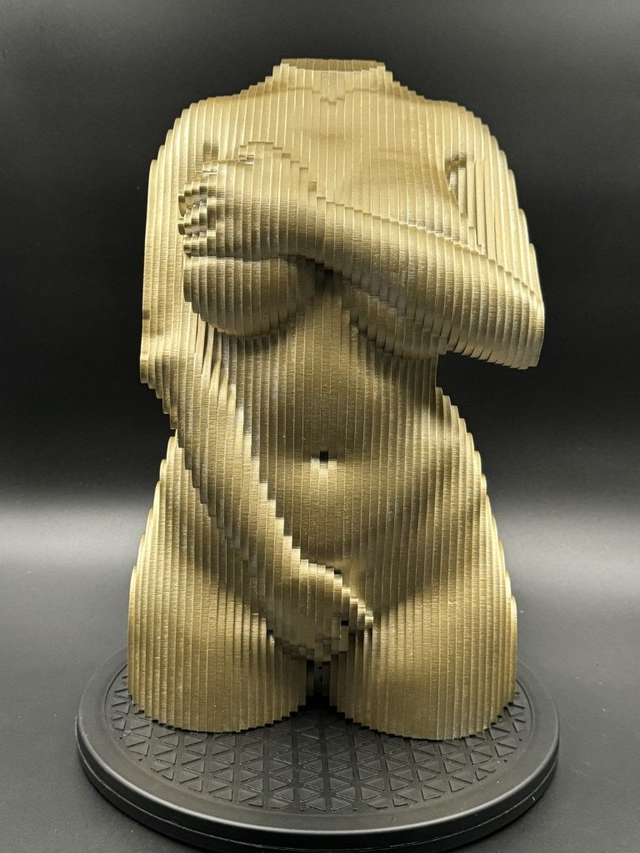Torso Female Bedekt - Een torso van een dames bovenlijf gemaakt van 4mm MDF, is leverbaar als bouwpakket met een Nederlandse handleiding, (houtlijm niet inbegrepen) Deze torso is ook gemonteerd leverbaar en zelfs gemonteerd in de kleur zwart of goud gespoten. Dit kunstwerk weegt 3,9 kilo en heeft een maatvoering van 33x15x21 cm. Op verzoek ook in andere kleuren leverbaar. Voor meer informatie, neem contact met ons op via de website van Humm4U.com